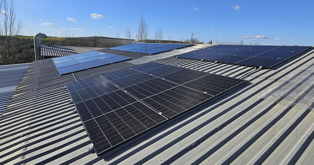 Instalación fotovoltaica de autoconsumo en Veinluc, compuesta por 36 paneles solares con una potencia total de 18.000 Wp. Gracias a este sistema, la empresa cubrirá cerca del 67 % de su consumo eléctrico anual mediante energía solar, reduciendo de forma significativa su dependencia de la red convencional.